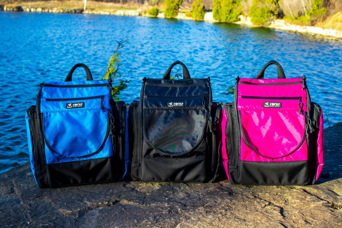 Ben, one of our founders and an experienced soft goods designer, came from the world of hiking and ice climbing, where durability is key. He leveraged that experience, combined with tons of input from Andrew and Zach (co-founders and avid disc golfers), to create a first-of-its-kind green disc golf pack designed with disc golfers' needs in mind.