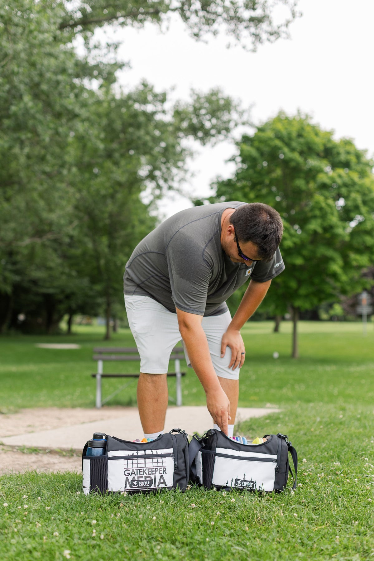 Meet our brand-new Weekender Bag! Made in collaboration with Gatekeeper Media, this bag will be your best friend on the course. The Weekender can hold up to 15 discs when full and also doubles as a cooler! That's right, all sides of the bag are insulated to keep beverages cool on the course. One side of the internal divider is sized to perfectly fit a six-pack of cans. When using half the bag as a cooler, the other side of the main compartment can still comfortably hold 6 discs.